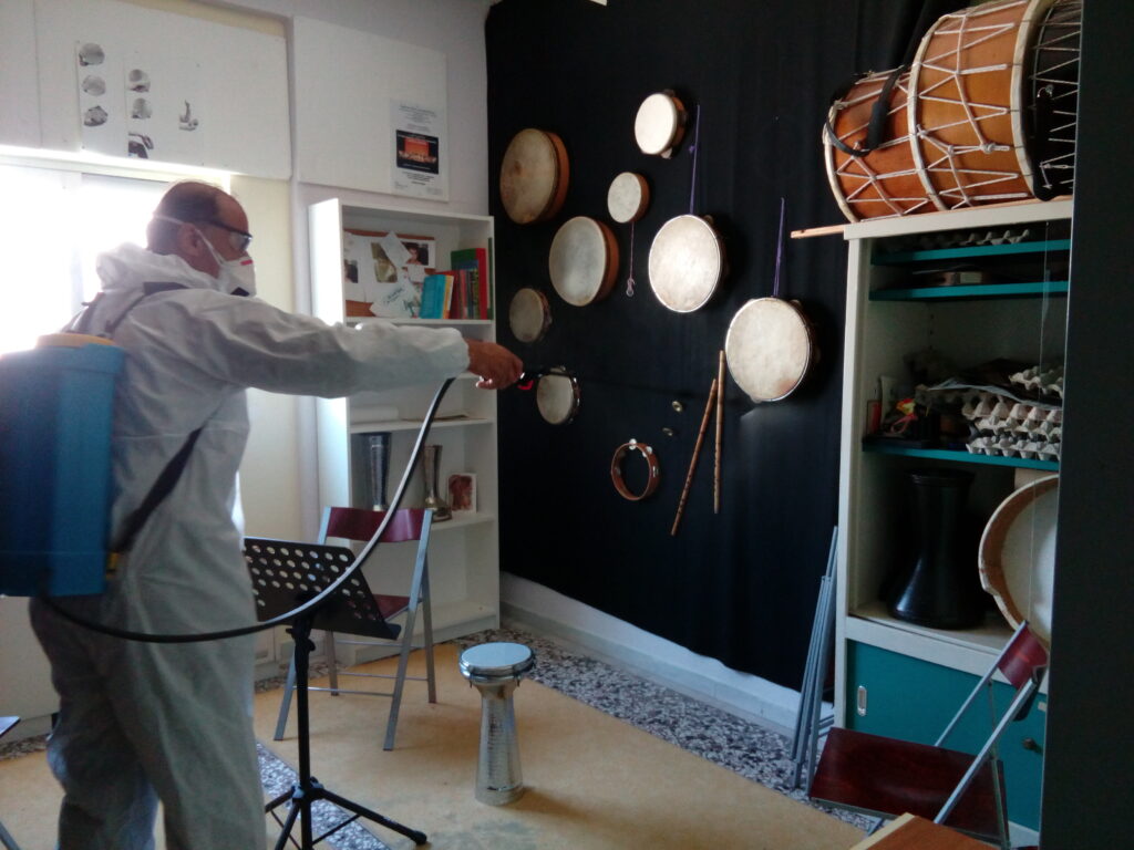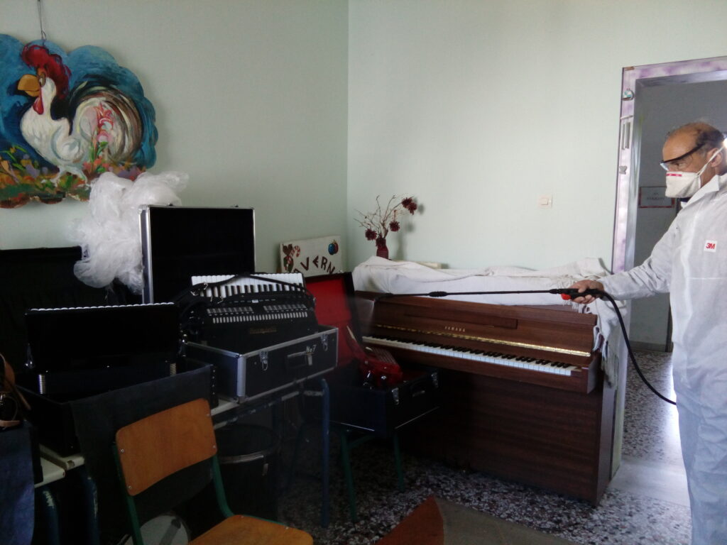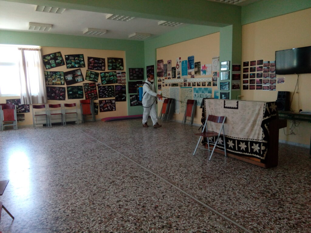 Φωτογραφίες από τη διαδικασία απολύμανσης του σχολείου στο πλαίσιο των μέτρων περιορισμού διασποράς του Covid-19 στο σχολικό περιβάλλον, Σάββατο 9/5/2020.
