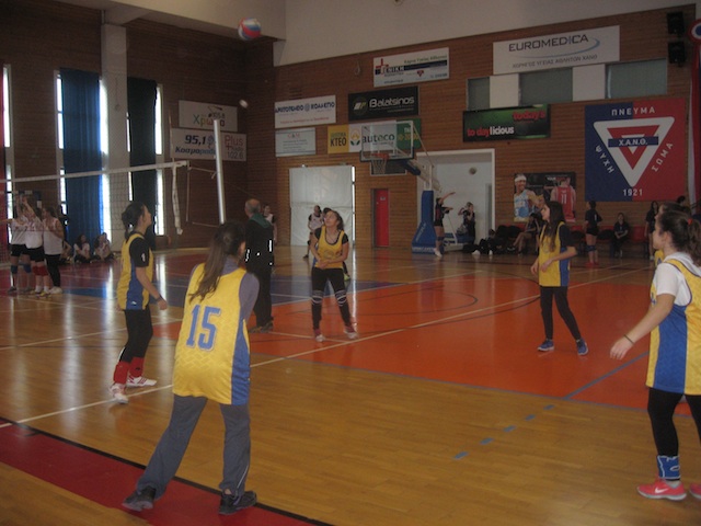 Στις 15/02/2016 διεξήχθησαν στις εγκαταστάσεις της ΧΑΝΘ οι Σχολικοί Αγώνες Πετοσφαίρισης Κοριτσιών Γυμνασίων. Το σχολείο μας έλαβε μέρος με μία ομάδα 12 μαθητριών όλων των τάξεων του γυμνασίου. Η ομάδα μας, παρά την προσπάθεια που κατέβαλε, ειδικά στο 2ο σετ, γνώρισε τελικά την ήττα από το 32ο Γ/σιο Θεσ/νίκης με 2-0 σετ (15-5 & 15-13). Οι εμπειρίες όμως που απέκτησαν όλες οι μαθήτριες καθώς και η χαρά της συμμετοχής και του ευγενούς συναγωνισμού παραμένει αναμφίβολα το μεγάλο κέρδος.