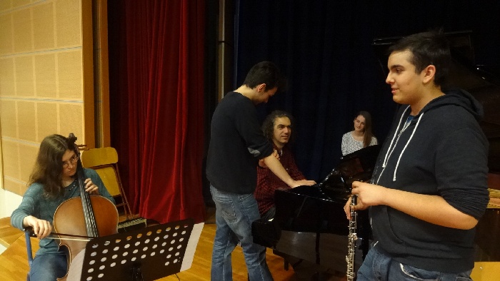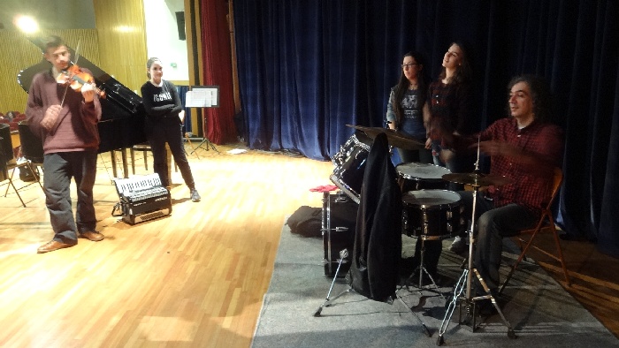 Μαθητές του συνόλου “Μουσικές του κόσμου” με τον συνθέτη Σταύρο Λάντσια
